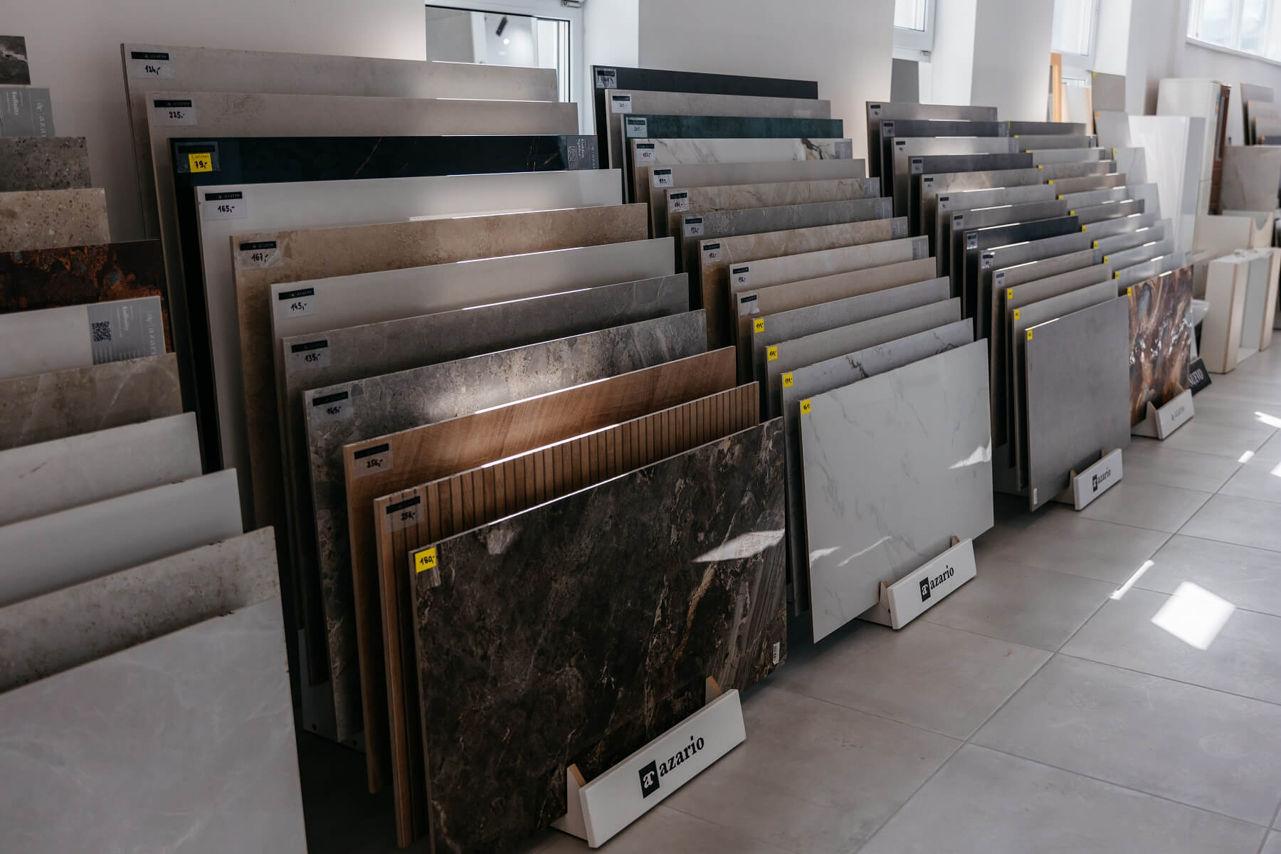 Szeroki wybór płytek, które posiadamy w ofercie zapewniają dużą wszechstronność aranżacyjną. Płytki występują bowiem w wielu różnych formatach i wzorach. Posiadamy w ofercie glazurę, terakotę, gresy szkliwione oraz barwione w masie jak również płytki klinkierowe. Wielkości płytek zaczynają się od rozmiaru 30cm. x 30cm. poprzez 60cm. x 60cm., aż do płytek wielkoformatowych 320cm.x160cm.Różnorodne powierzchnie płytek: polerowane, lappato, matowe czy strukturalne powodują możliwość dopasowania ich do każdego wnętrza. Nasza oferta obejmuje płytki imitujące kamień, beton, marmur oraz drewno. Ponadto posiadamy listwy oraz mozaiki nadające niepowtarzalny klimat.